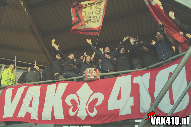 Met zo'n 30 man VAK410 wordt de reis gemaakt richting Almelo. We zijn inmidds wel gewend aan strenge regels maar vandaag kunnen we als groep wederom vrij reizen. En dus wordt er goed gebruik gemaakt van het ingeslagen bier en de nodige baco's. De muziek gaat aan en met de saamhorigheid zit het wel goed. Aangekomen bij de bouwput van Heracles nemen we plaats in het uitvak. De stemming in de bus slaat over op de tribune.