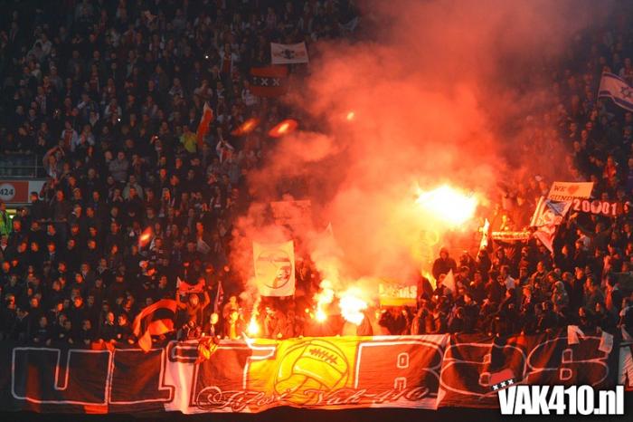 Bekerfinales en pyroshows zijn in onze ogen inherent aan elkaar; speelt Ajax de bekerfinale dan hoort daar vuurwerk bij. Op de tribune en op het veld. Gisteren was dit tot twee maal toe te bewonderen, direct na de aftrap en na de vroege goal. Chaotische taferelen volgden, waarbij tot onze spijt, vuurwerk bijna op onze keeper Kenneth Vermeer terecht kwam. Wij betreuren dit feit ten zeerste. Het kan absoluut niet de bedoeling geweest zijn om vuurwerk op welke speler dan ook te gooien, dus ook niet op Kenneth Vermeer. VAK410 staat 100% achter het gebruik van vuurwerk, maar altijd op een sfeer verhogende wijze en nimmer om onze, dan wel andere spelers in gevaar te brengen.