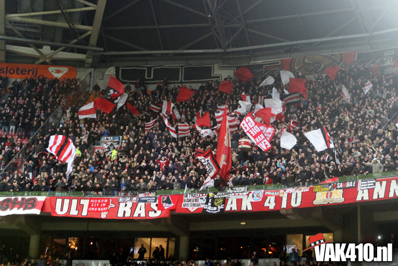 Tijdens de wedstrijd verschijnt er een spandoek met de tekst: ‘Fred Buffing, Karma is a bitch’ op het vak. Wij hebben vanuit bronnen binnen de Amsterdamse politie vernomen dat Fred Buffing, politieagent en moordenaar van Michael Koomen, een hersentumor heeft. Normaal gesproken zou je zeggen dat je dat niemand toewenst, maar in dit geval, waarin Justitie deze ontspoorde agent niet straft en continu indekt…. Karma is a bitch, of niet dan Fred?